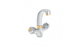 Dvoručna keramička slavina/baterija za bide Val 07551 s gornjim dijelom sifona, sifonom, kutnim ventilima.