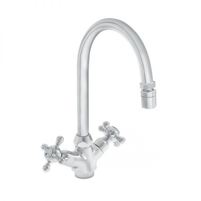 Dvoručna keramička slavina/baterija "J" izljeva za kuhinju Stil 07159 s kutnim ventilima.